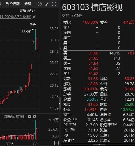 早盘影视板块再度走强,横店影视6天5板,浙文影业涨停,幸福蓝海、博纳影业、金逸影视、中国电影跟涨。