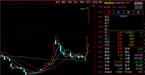AI应用概念震荡走高,捷成股份(300182)、荣信文化20%涨停,其中,捷成股份涨停板上有超130万手买单。