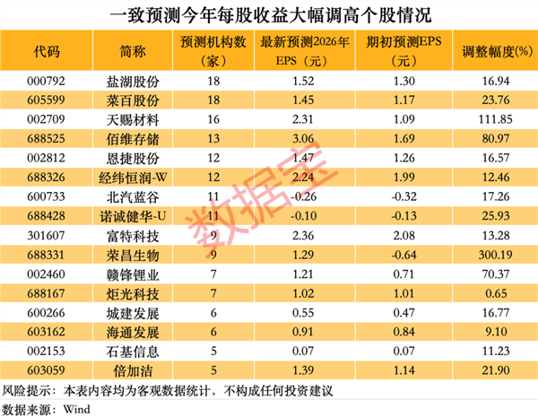 近期,哪些股票被机构大幅上调2026年盈利预测?