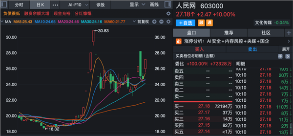 盘初,AI审核概念表现活跃。人民网封涨停,浩瀚深度涨超10%,国投智能涨超8%,博汇科技、三未信安、吉大正元、中新赛克跟涨。