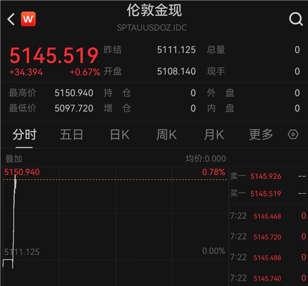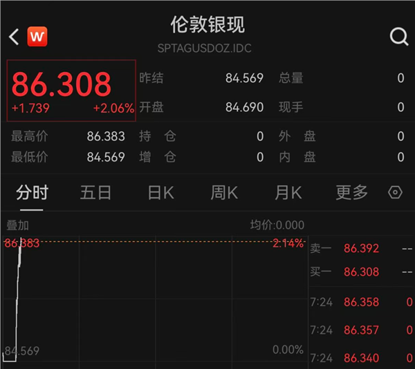 2月23日,黄金、白银开盘直线拉涨。截至发稿,国际现货黄金涨幅为0.67%,报5145.519美元/盎司;现货白银突破86美元/盎司,日内涨幅扩大至2%。