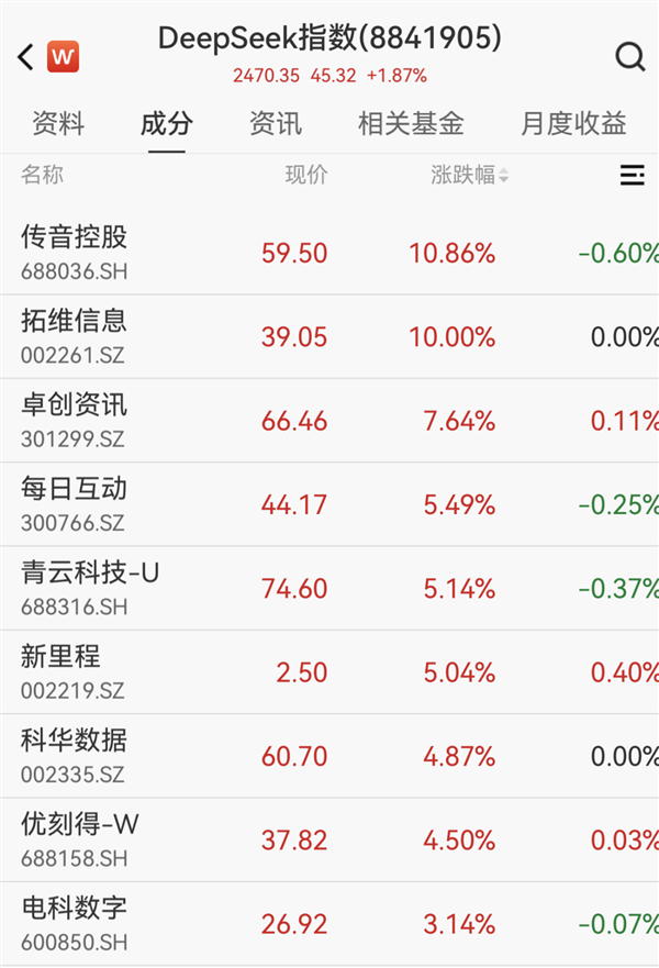 DeepSeek概念股整体跑赢上证指数