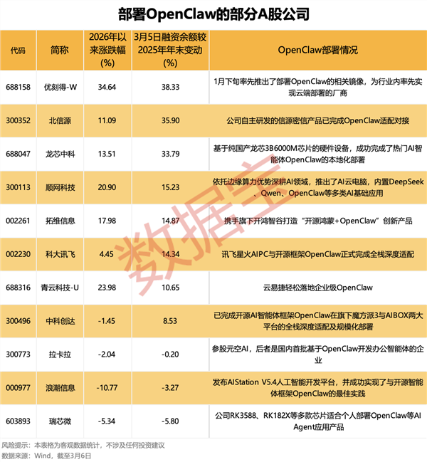 从A股市场来看,根据公开披露的信息显示,目前已有10余家公司部署OpenClaw或完成OpenClaw适配对接。