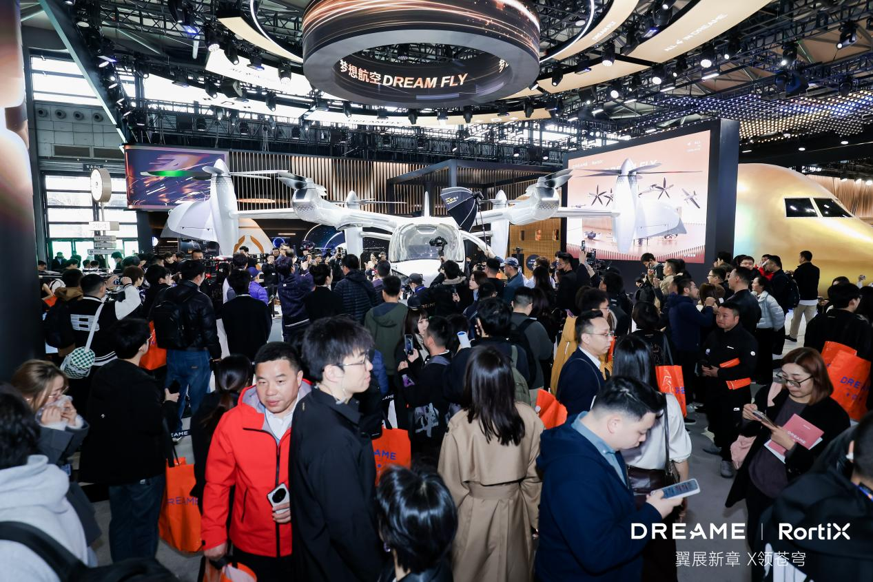 在展区核心位置,万众期待的RortiX eVTOL真机首次展出。这款承载着未来城市空中出行梦想的飞行器,以其流线型的设计吸引了每一位观众驻足,让“打飞的”出行的愿景首次如此真实地触手可及。继全球首次公众展出自研eVTOL运营机型,RortiX 未来将同步组建全球性的eVTOL机队,未来还将进一步产研下一代evtol机型。