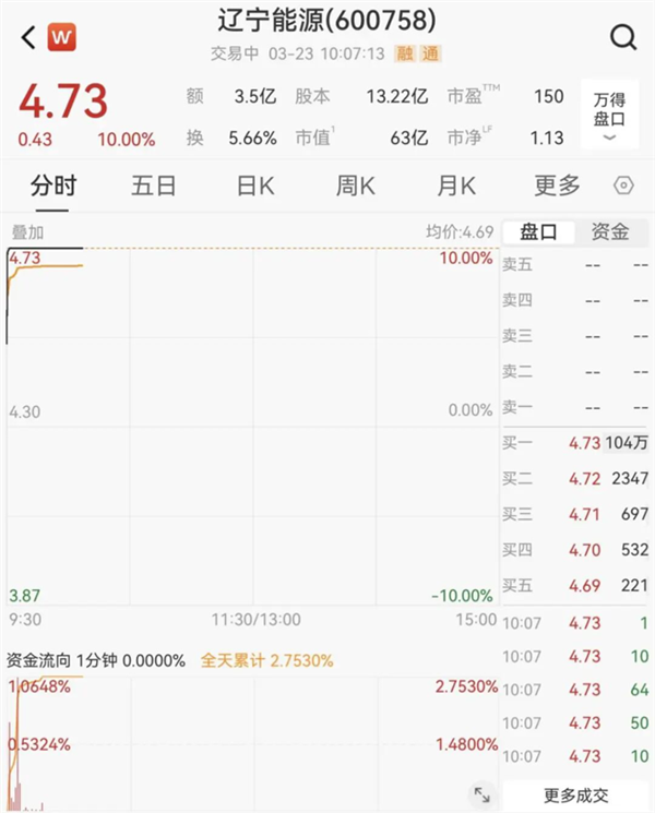 煤炭板块逆市走高,辽宁能源一分钟涨停,104万手封住涨停板。此外,云煤能源、山西焦煤涨停,平煤股份、山西焦化、淮北矿业等跟涨。