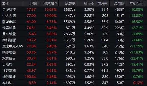 人形机器人概念股震荡走强,金发科技、中大力德涨停,长盛轴承、卧龙电驱、朗科智能等跟涨。