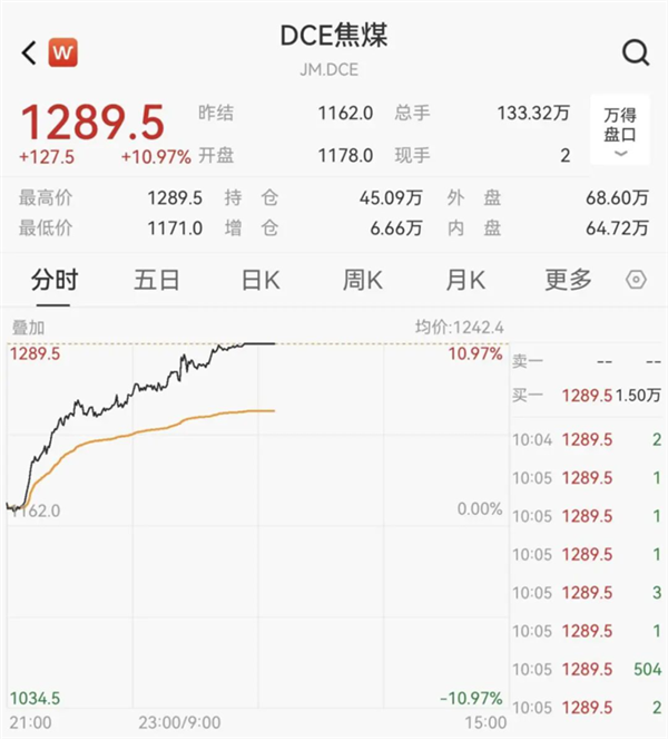 消息面上,焦煤期货主力合约触及涨停,涨幅近11%。