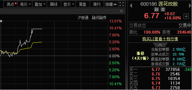 3月24日早盘,算力概念盘中震荡反弹,概念指数一度涨近2%。其中,莲花控股涨停。截至发稿,莲花控股股价报6.77元/股,涨幅10.08%,最高封单额超8亿元。