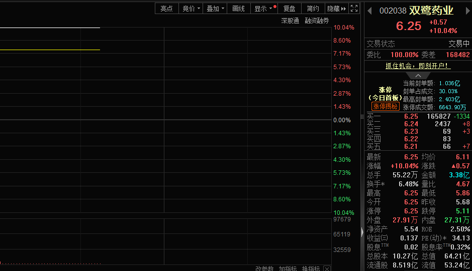 3月25日,减肥药概念集体大涨。个股方面,双鹭药业(002038)股价涨停。
