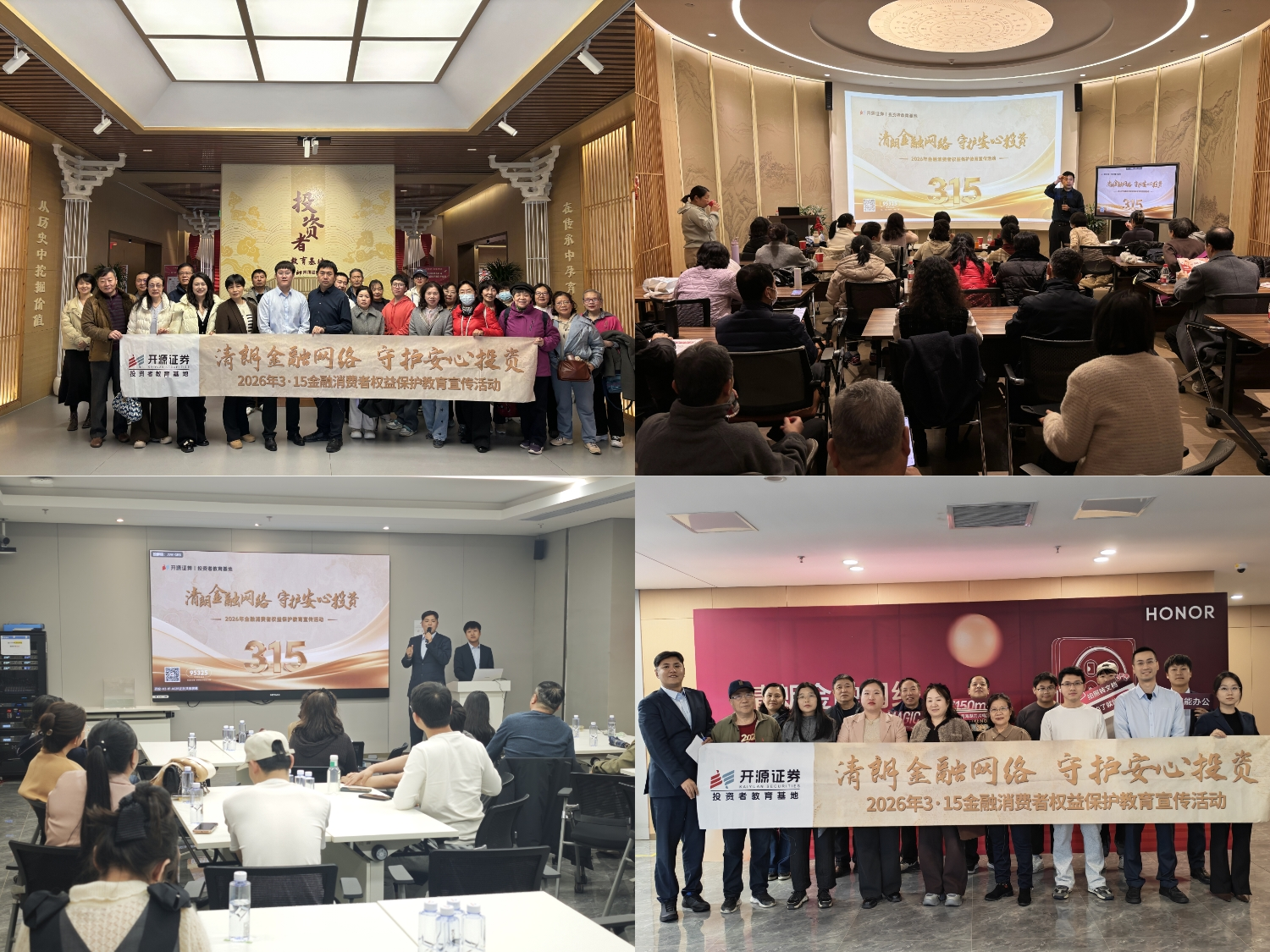 春风十里,守护不停。2026年3・15投资者保护教育宣传专项活动,开源证券实现金融教育空间全覆盖、服务群体精准化、宣传内容专业化,既弘扬了中国特色金融文化、传递了金融正能量,也精准提示了金融网络乱象风险、加强了资本市场法治宣教,有效提升投资者获得感、幸福感和安全感。