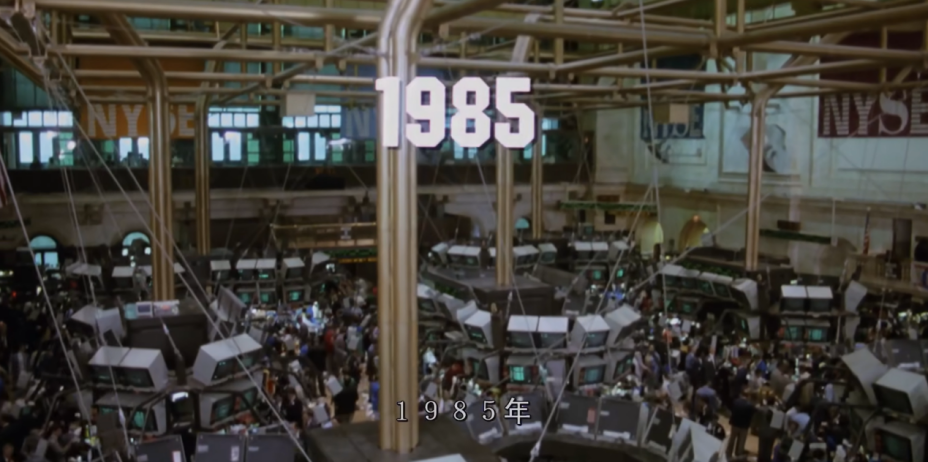 据报道,当时纽交所极少对外开放拍摄,导演奥利佛・斯通获特批争取到了45分钟的拍摄时间,且必须在真实交易时段拍摄,因此画面中的交易员和经纪人与实时行情都是真实的现场。导演以俯拍视角扫视整个交易大厅,只见数百名交易员如穿梭于金融迷宫中,或匆忙打电话,或急切打手势,电子屏上滚动的实时股价,如同命运的脉搏,跳动不息,生动还原了80年代美股“人工喊价+电话委托”的交易生态,这一幕也奠定了金融题材电影的写实标杆。
