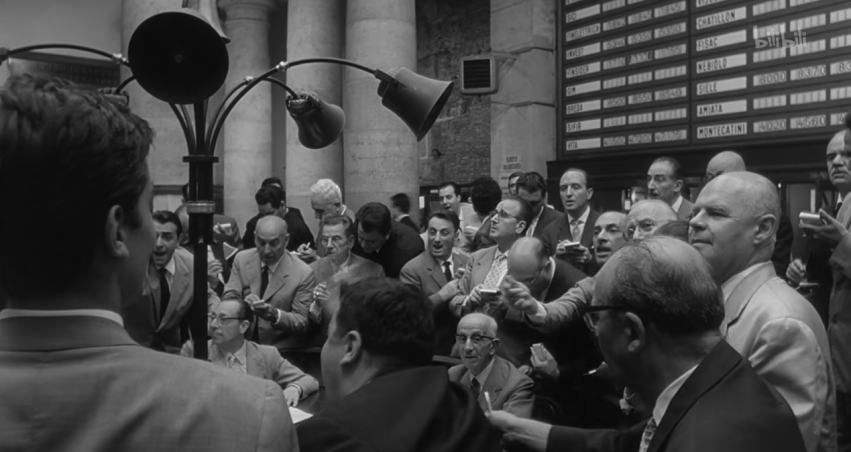 电影《蚀》(1962,米开朗基罗·安东尼奥尼)中展示的罗马证券交易所场景