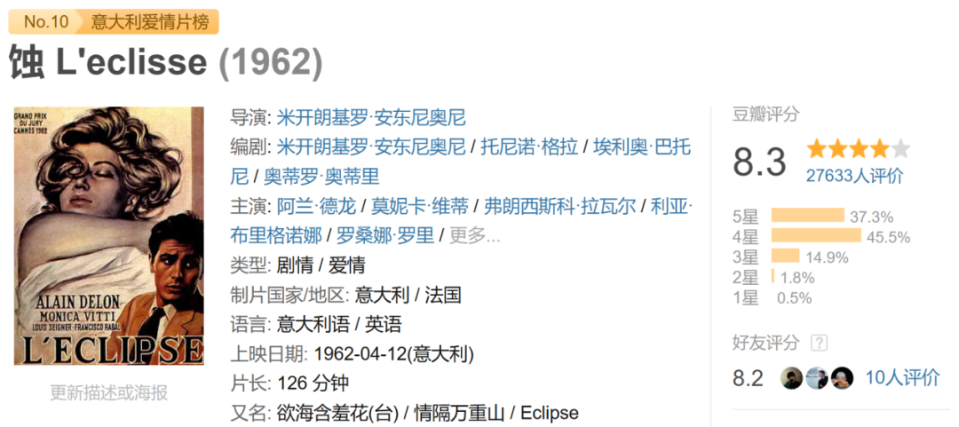 《蚀》以精妙的叙事结构,借股票之涨跌起伏,将物质欲望的膨胀推向极致,使得剧中人物的情感危机在资本的浪潮中更显跌宕与脆弱。这不仅仅是一部关于爱情与失落的故事,更是一次对现代性困境、人性异化以及存在主义焦虑的深刻探讨。