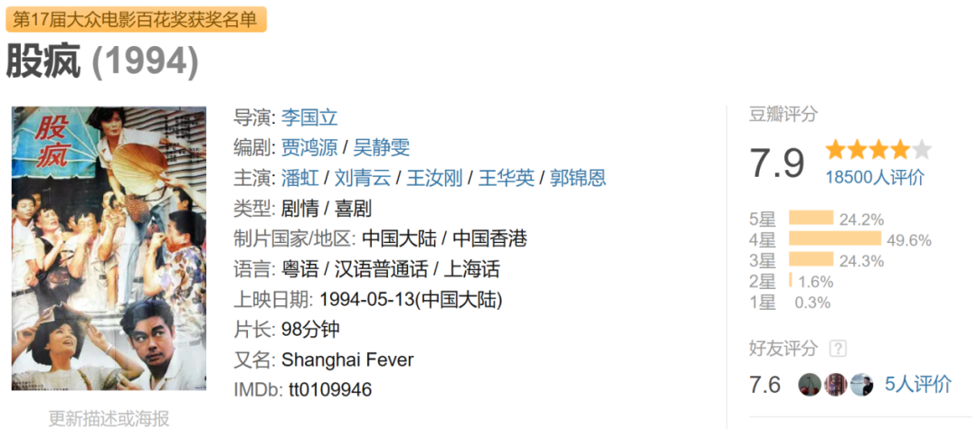 《股疯》是中国内地首部聚焦全民炒股的沪语喜剧,以90年代初上海股市热潮为背景,描绘普通人被金钱裹挟、家庭与人性在股海浮沉的故事。影片虽然未将镜头伸向交易所取景,却在真实可感的证券营业部中捕捉到了时代的脉搏,高度还原了当年股民近乎痴狂的炒股热情。