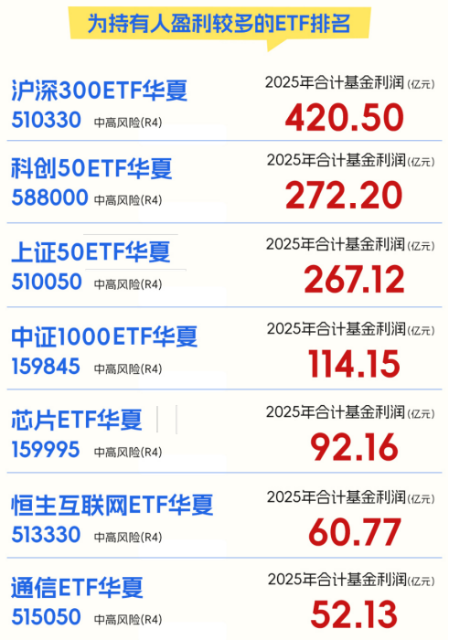 根据最新披露的2025年年报显示,华夏基金旗下公募产品合计为基民赚钱2356.46亿元(数据来源:华夏基金,2025年底,剔除联接基金)。一起跟小夏一起来盘一盘那些为基民赚钱较多的产品都有哪些~