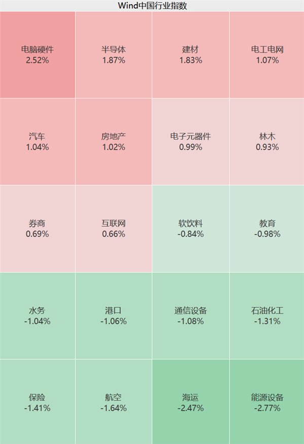 盘面上,上午建材、房地产、半导体、汽车等板块走强,玻璃纤维、GPU、先进封装等概念股活跃;传媒、交通运输等板块不振,石油石化板块高开低走。