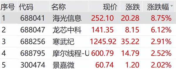 另外,上午GPU概念股直线走强。海光信息盘中涨超9%,龙芯中科、寒武纪、摩尔线程等集体走高。