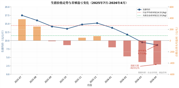 图3:生猪价格走势与养殖盈亏变化(2025年7月-2026年4月)