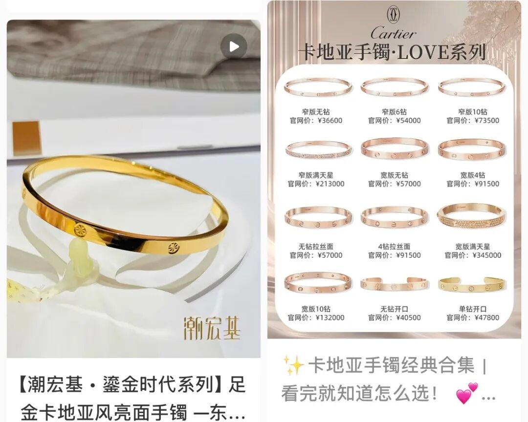 相较于宝格丽案,潮宏基与历峰集团(Richemont)的纠纷更为复杂。2024年9月,历峰集团指控潮宏基侵犯其旗下奢侈品牌卡地亚的知识产权,核心指向卡地亚“Love”系列的标志性“螺纹锁扣”设计,同时指控潮宏基存在不正当竞争行为。
