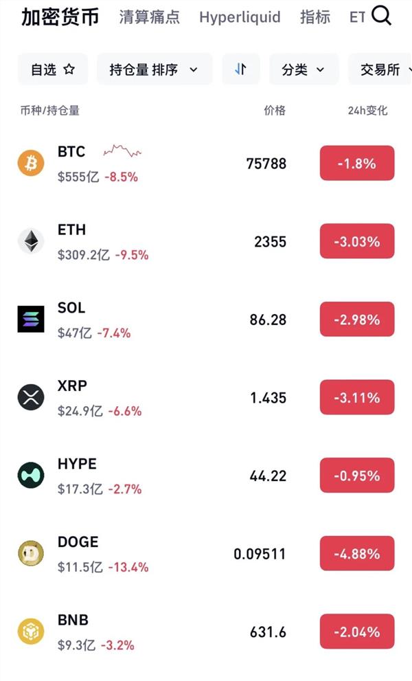 市场方面,加密货币全线跳水。截至发稿,比特币向下跌破76000美元。