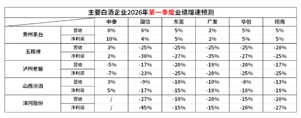 先说结论,综合各大机构对2026年一季度的业绩预测,“渠道去库、业绩出清”成为贯穿白酒行业Q1的核心关键词。整体上,机构对趋势判断大同小异,但对具体公司的预判,分歧却格外鲜明。