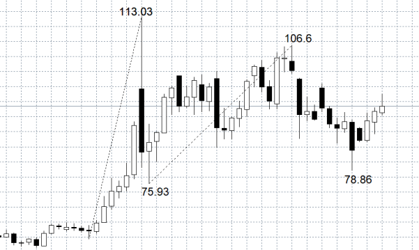 行情图表方面,国际油价最新的中期高点阻力位是106.6,最新的中期低点阻力位是75.93。如果只看上图的话,可能会觉得78.86是新的中期低点。但由于78.86还需要右侧一个底分型的验证,所以他现在不能成为中期低点。考虑到上方106.6美元的压制,右侧形成标志性底分形的空间被极大的压缩,未来78.86倍向下跌破否认其中期低点地位的概率较高。