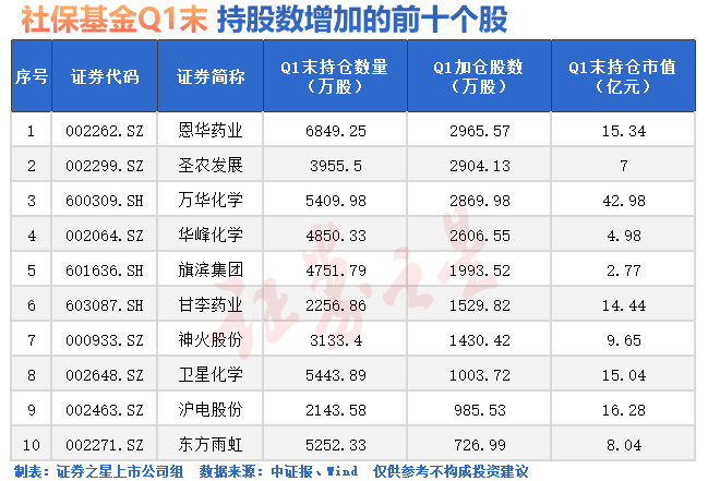 社保基金一季度大幅加仓这些股(名单)
