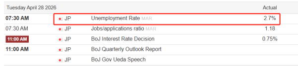 今日早间7点30分,日本公布了三月份的失业率数据,最新值2.6%,相比前值下降了0.1个百分点。日本的劳动力市场一直保持充分就业的状态,所以该数据对美元兑日元短线行情的冲击力不大。数据公布之后的一分钟K线,开盘价收盘价最高价最低价分别为:159.41、159.42、159.42、159.41,一分钟内的最大波动幅度也只有一个点,开盘价和收盘价也仅相差一个点,可以认为行情没有出现任何意外变化。
